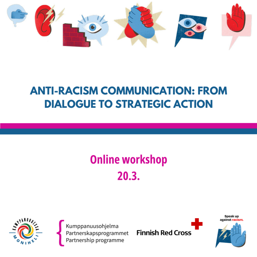 An online anti-racism workshop organised by the Kumppanuudessa project explored the nature of racism and developed strategic skills for anti-racist communication. The training provided perspectives, knowledge, and tools for anti-racism action.